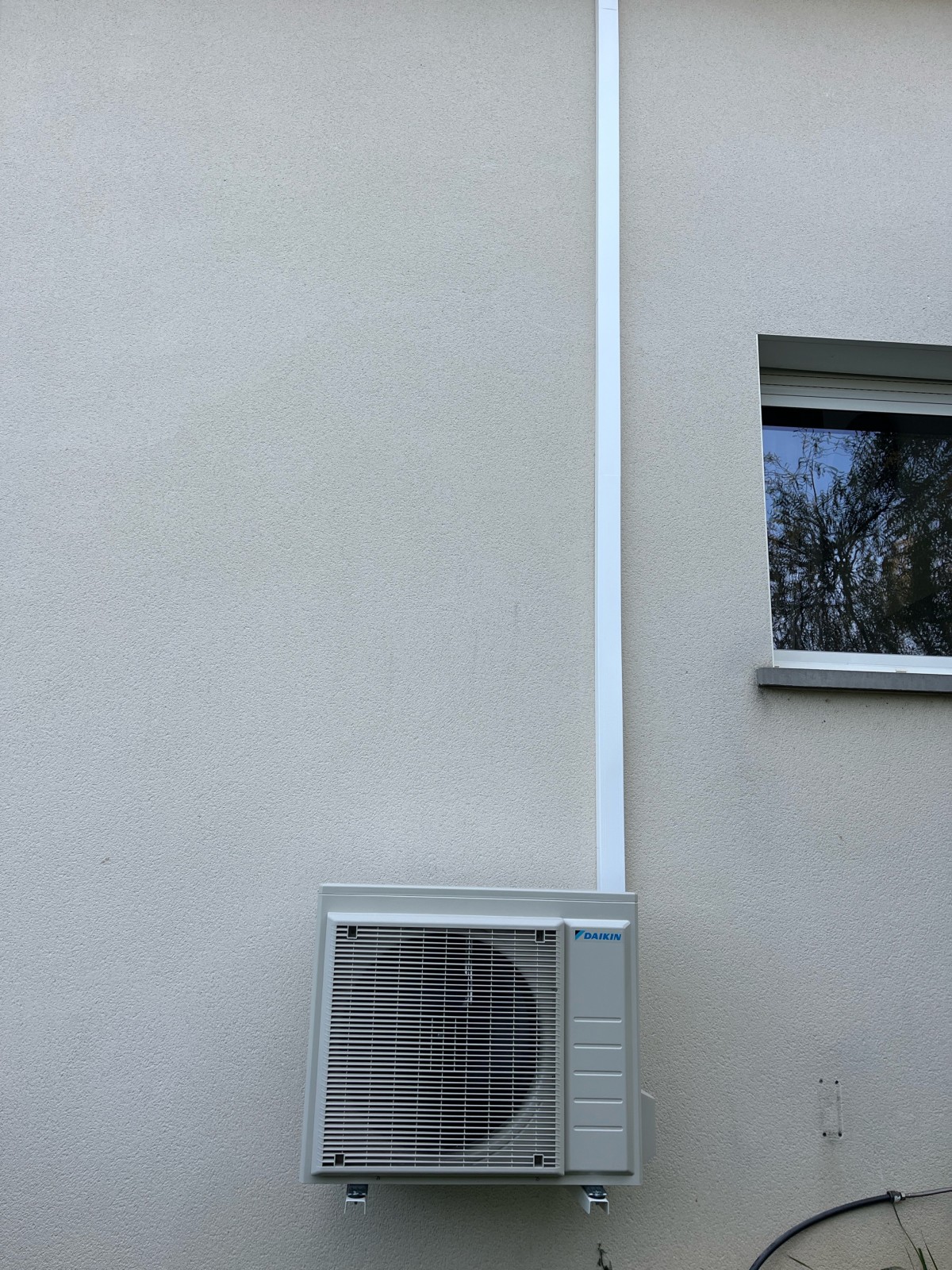 La pose est assurée intégralement par M. PLASSON, sans sous-traitants. Les évacuations sont réalisées sans pompe de relevage. Tout le matériel est équipé de Wi-Fi, et l’ensemble de l’installation est pilotable à distance grâce à l’application mobile DAIKIN ONECTA, en complément du webserver intégré au système Koolnova.