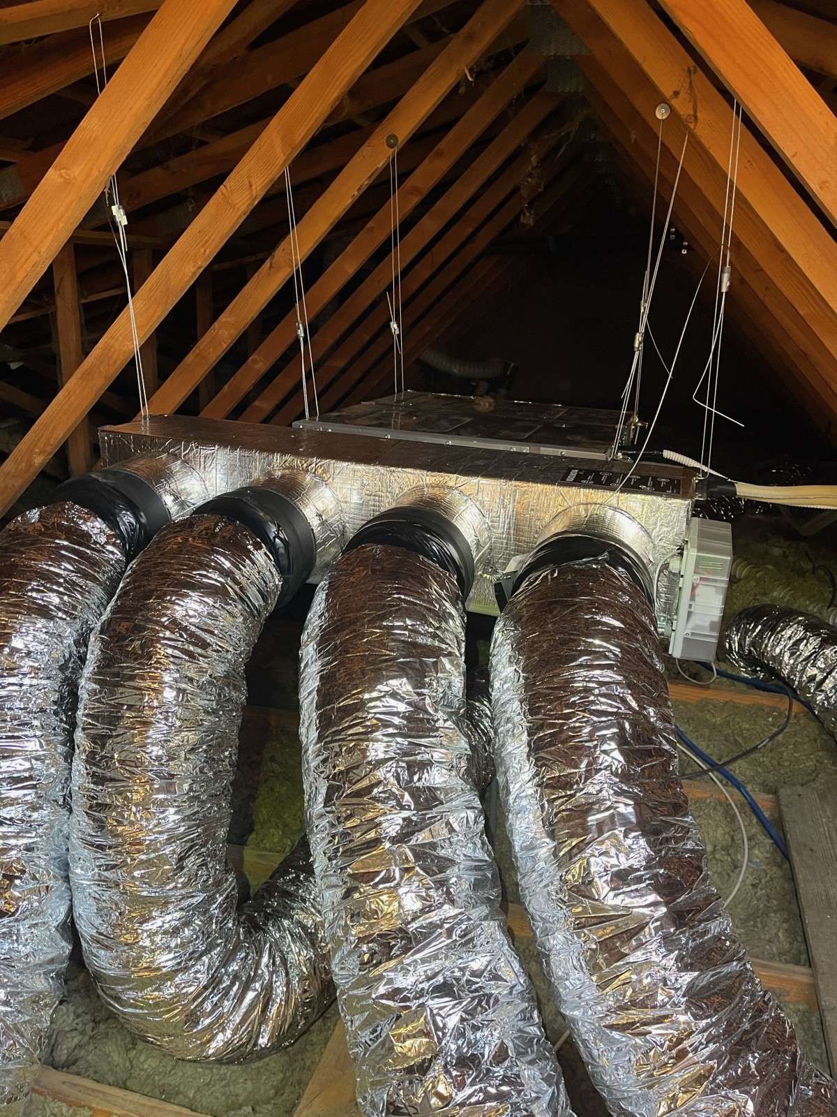 La zone nuit est équipés de quatre diffuseurs, d’une reprise filtrée et de gaines acoustiques pour limiter les bruits d’air.