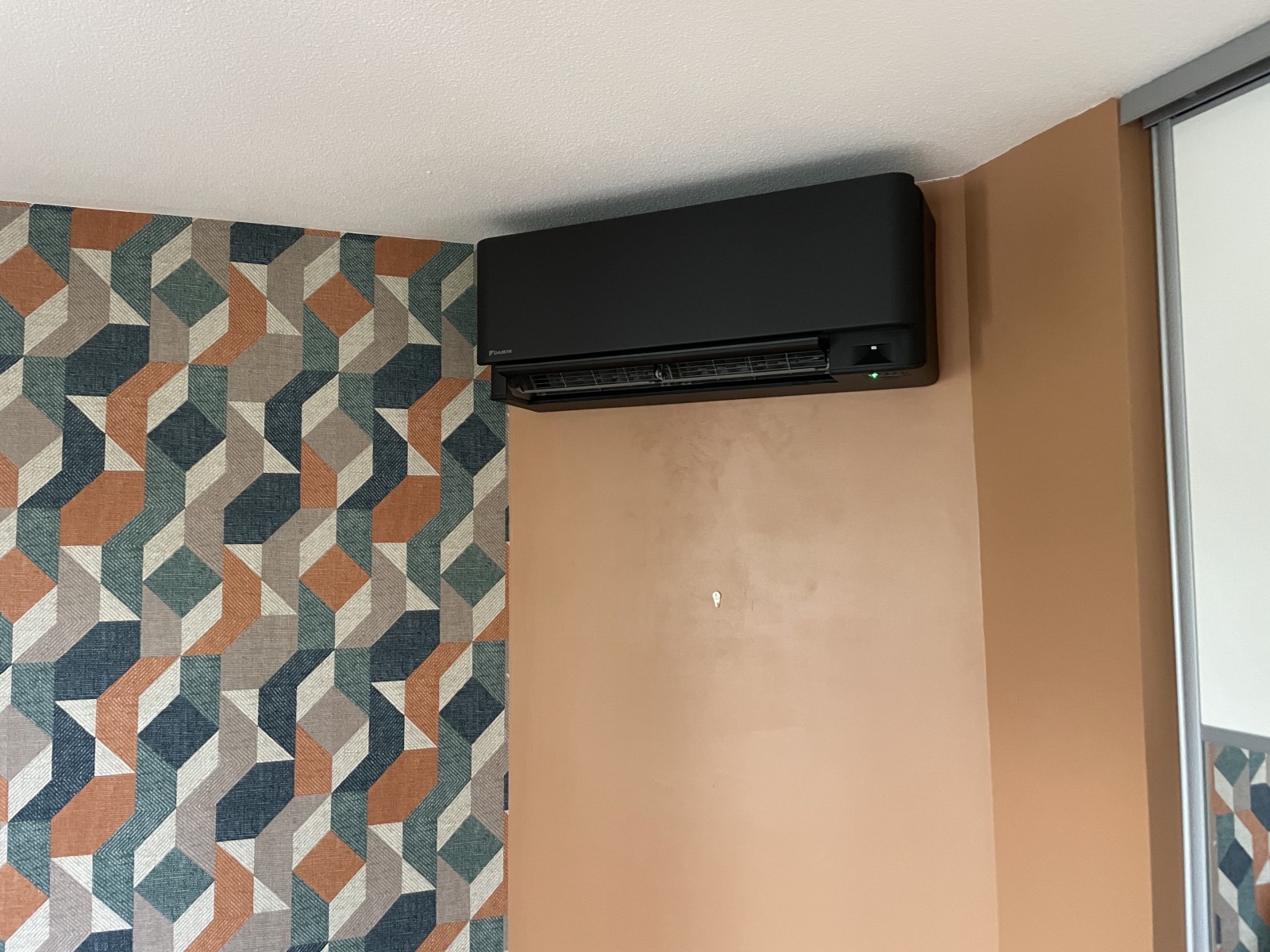L’installation s’est déroulée sur une demi journée, ou la pose s’est faite dans l’angle de la pièce pour éviter “un gros bloc blanc” trop visible au milieu de sa pièce. Nous avons donc dû le conseiller sur :