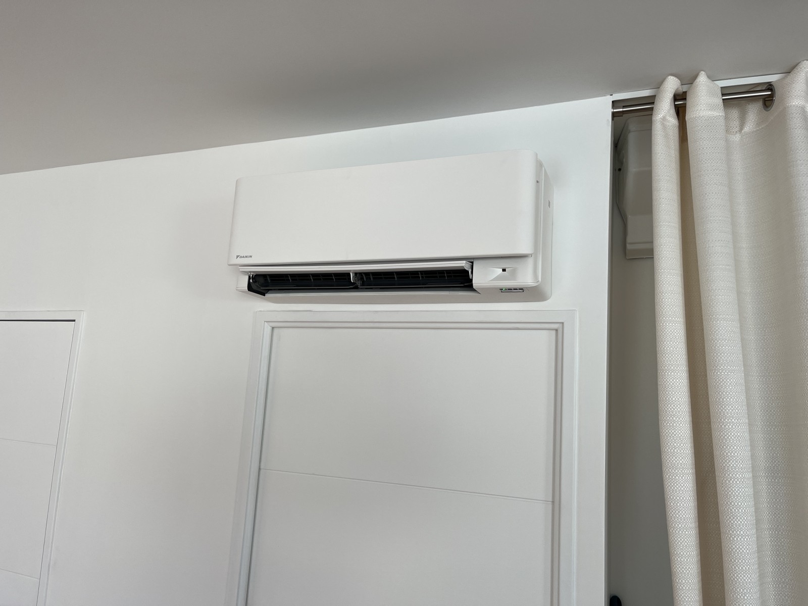 Le jour de l’intervention, l’unité murale a été posée dans le salon, tandis que le groupe extérieur DAIKIN RXA42B9, d’une pression sonore de 48 dB(A), a été fixé dans un emplacement stratégique pour minimiser les nuisances sonores. Tous les raccordements ont été réalisés avec précision, en veillant à l’esthétique de l’installation.